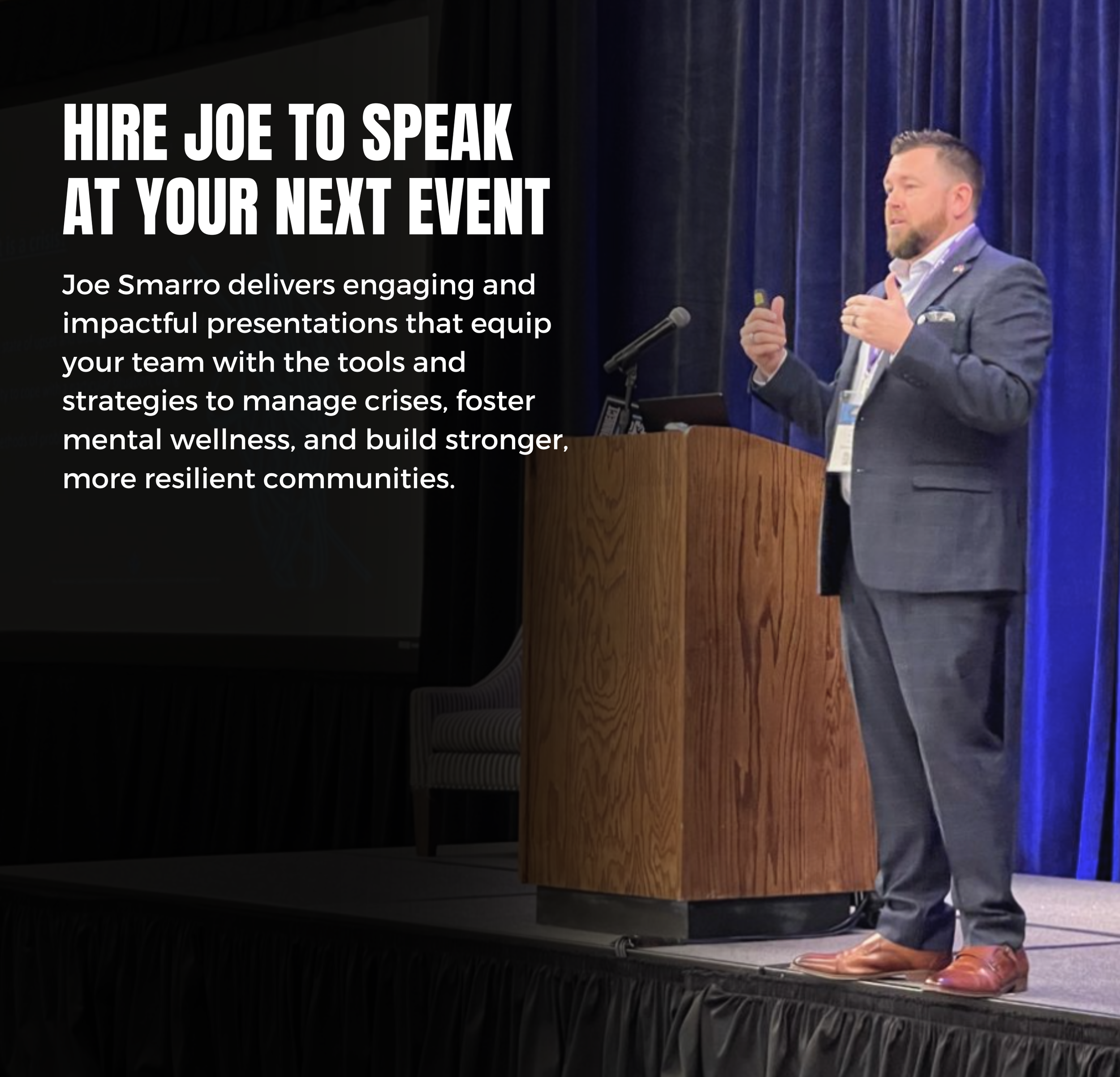 We'd love to hear from you! Whether you're interested in booking Joe for a speaking engagement, attending an in-person training, or learning more about our services, please fill out the form. Our team is looking forward to connecting with you and discussing how we can support your goals & journey toward greater success. Let's work to create safer, more resilient communities & start making a meaningful impact, together.